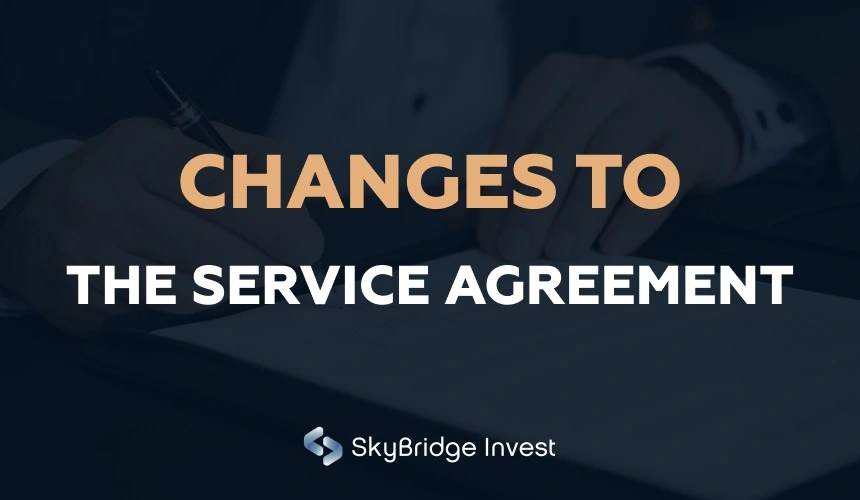 JSC "SkyBridge Invest" (hereinafter – the “Company”) hereby notifies that by the Decision of the Company’s Management Board dated 22.08.2025 (Minutes No. 19), amendments and additions to the Standard Agreement for the provision of brokerage services and nominee holding services of JSC "SkyBridge Invest" were approved, which shall enter into force 15 days after the date of this publication.