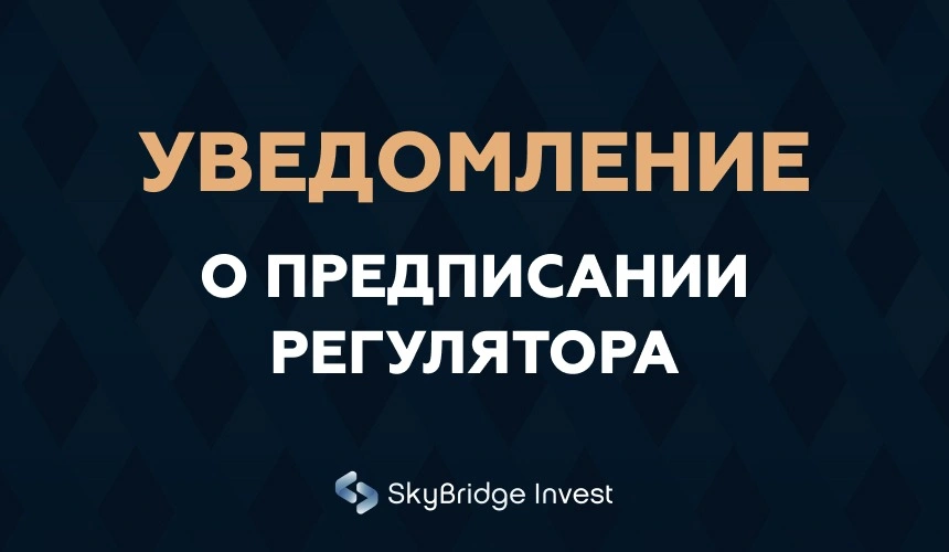 АО "SkyBridge Invest" (далее – Общество), в соответствии с пунктом 21 Правил осуществления деятельности по управлению инвестиционным портфелем, утверждённых Постановлением Правления Национального Банка Республики Казахстан от 3 февраля 2014 года № 10, а также в соответствии с пунктом 30 Правил осуществления брокерской и (или) дилерской деятельности на рынке ценных бумаг, утверждённых Постановлением Правления Национального Банка Республики Казахстан от 3 февраля 2014 года № 9, уведомляет о том, что Компании предписано принять обязательные к исполнению меры по обеспечению соответствия ее деятельности законодательству Республики Казахстан на основании письменного предписания Агентства Республики Казахстан по регулированию и развитию финансового рынка от 01.08.2025 года. Указанная выше мера не повлияет на оказываемые Компанией услуги.